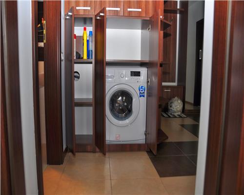 Apartamentul este situat la etajul 6 (etaj intermediar), este complet mobilat si utilat, finisajele si dotarile fiind atent alese pentru a oferi un standard ridicat de confort: centrala termica proprie, aer conditionat in fiecare camera, electrocasnice complete (plita, cuptor, frigider, masina de spalat vase, masina de spalat rufe), TV, aspirator, precum si boxa pentru depozitare.
