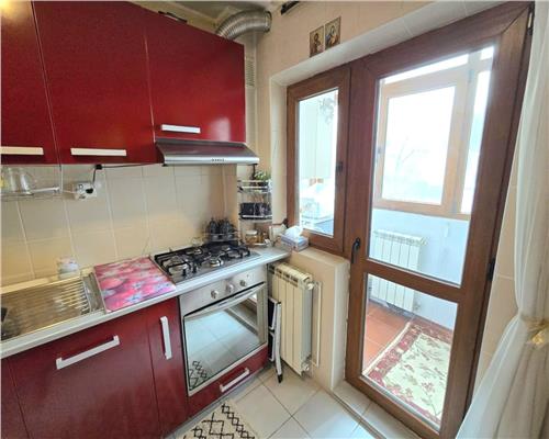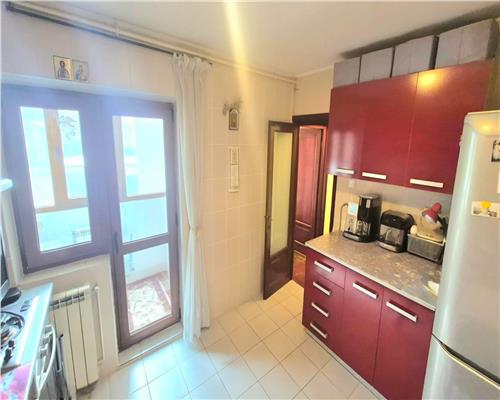 bucatarie inchisa, dreptunghiulara, aproape 10 mp, cu acces direct in balcon